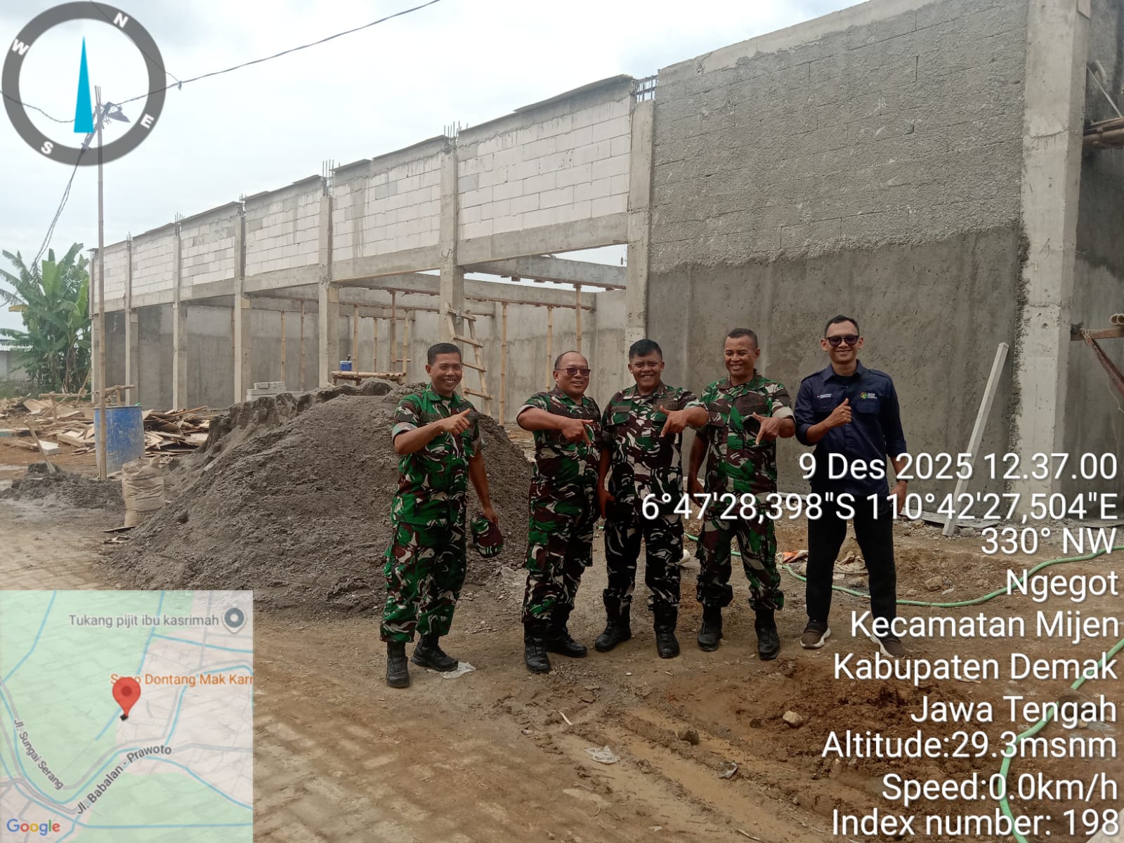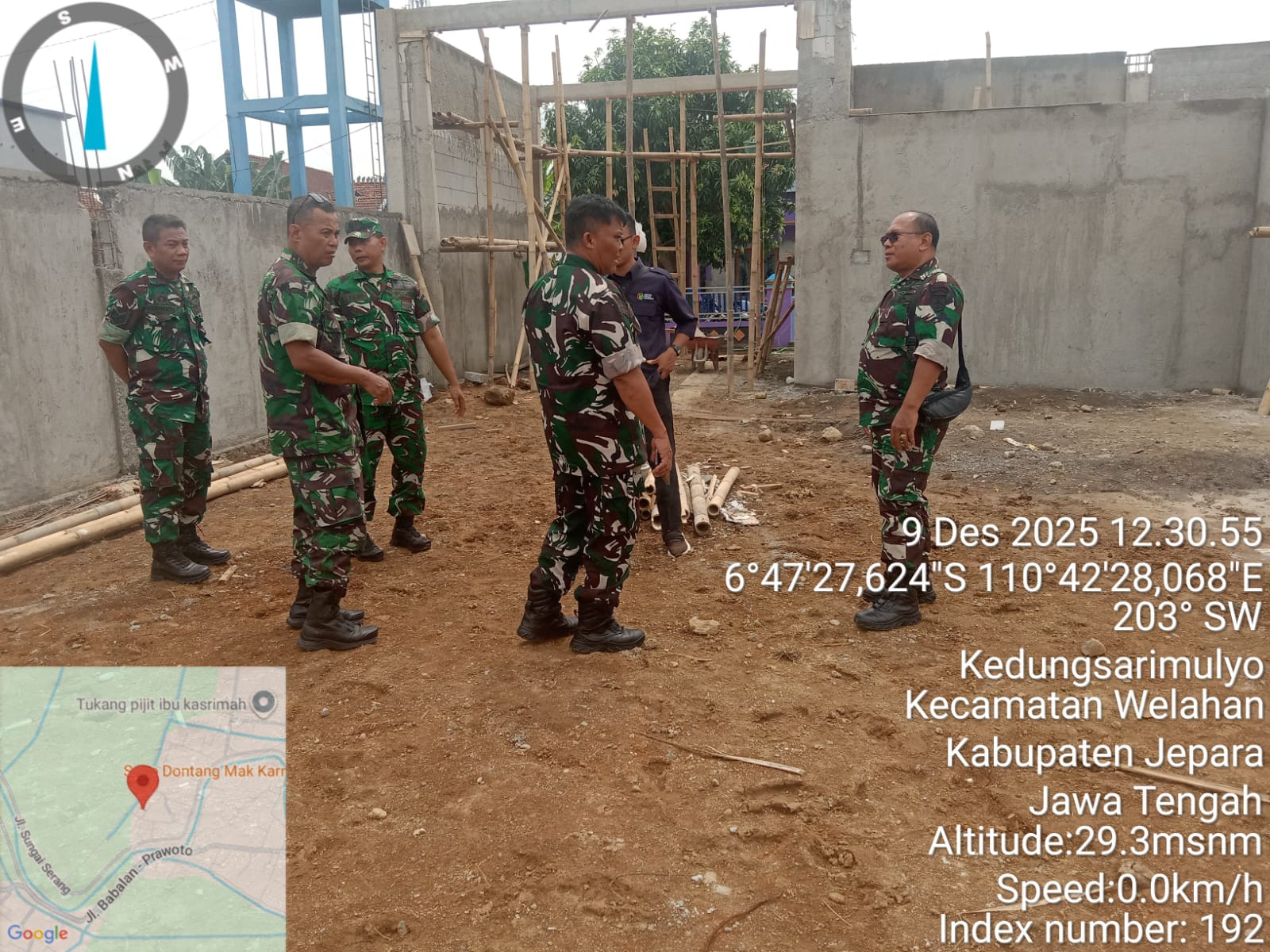 JEPARA, sidikkriminal.co.id – Pasiter Kodim 0719/Jepara Kapten Inf. Ngadino bersama Komandan Koramil 06/Welahan Kapten Inf. Agus Supriyanto beserta anggota mendampingi Wadandezibang 3/IV Salatiga Mayor CZI Armushalim dalam kegiatan pengecekan pembangunan Koperasi Desa Kelurahan Merah Putih (KDKMP) di Desa Kedungsarimulyo, Kecamatan Welahan, Kabupaten Jepara. Selasa,(09/12/2025).