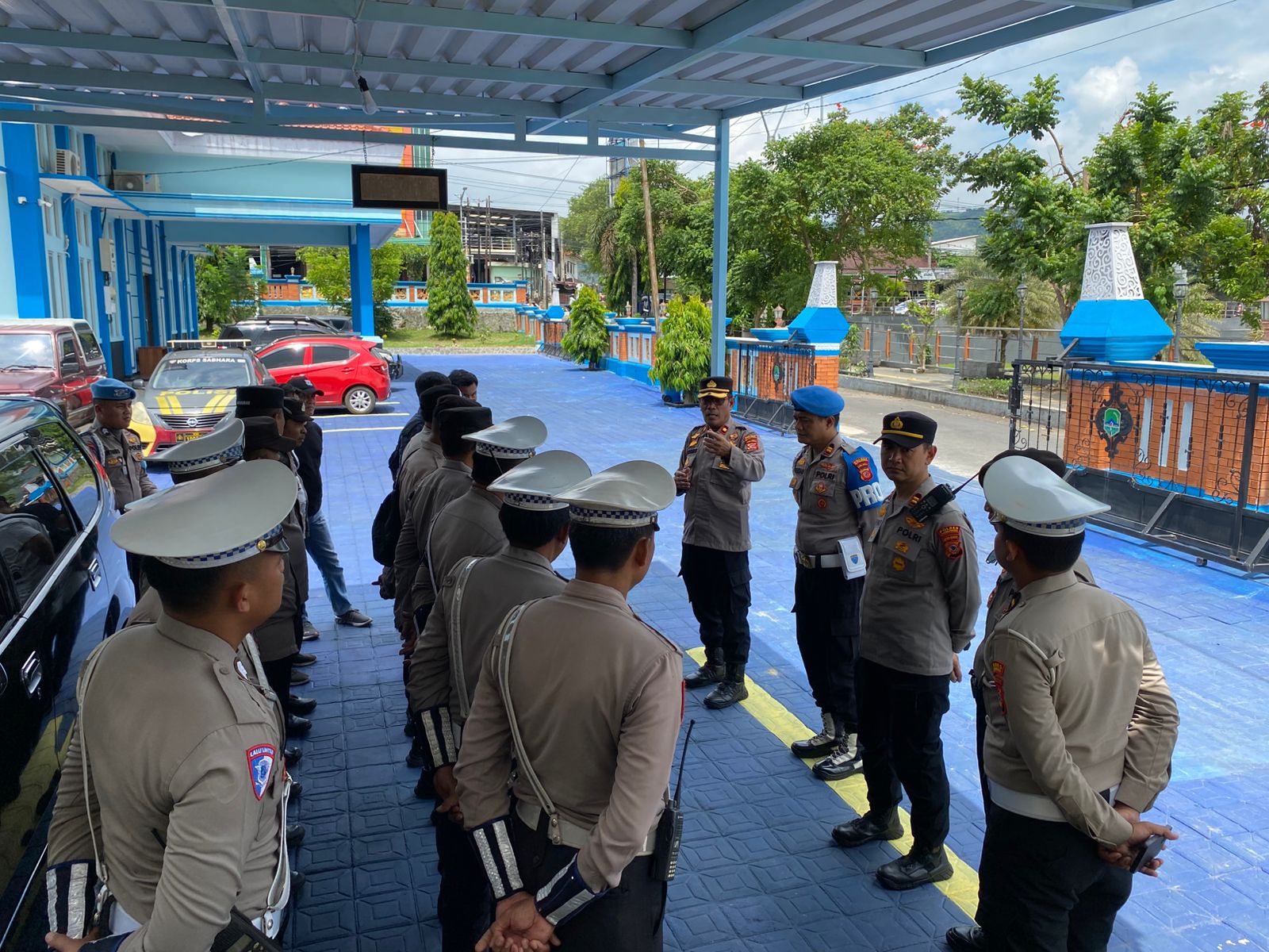 Satuan Lalu Lintas disiagakan untuk memastikan mobilitas rombongan tidak mengganggu aktivitas warga, sementara personel Sat Samapta dan Polsek jajaran memperketat pengamanan di ring lokasi acara.