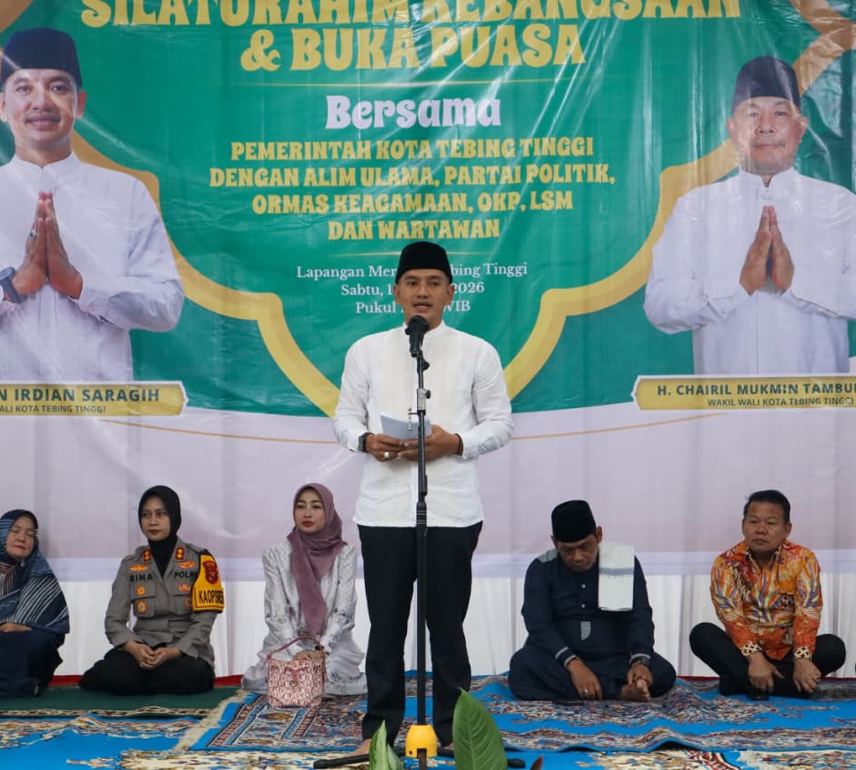TEBING TINGGI, sidikkriminal.co.id — Dalam upaya mempererat tali persaudaraan dan menjaga kerukunan antar umat beragama, Pemerintah Kota (Pemkot) Tebing Tinggi menyelenggarakan acara Silaturahim Kebangsaan dan Buka Puasa Bersama di Lapangan Sri Mersing, Jln. Dr. Sutomo, pada Sabtu sore, (14/3/2026).