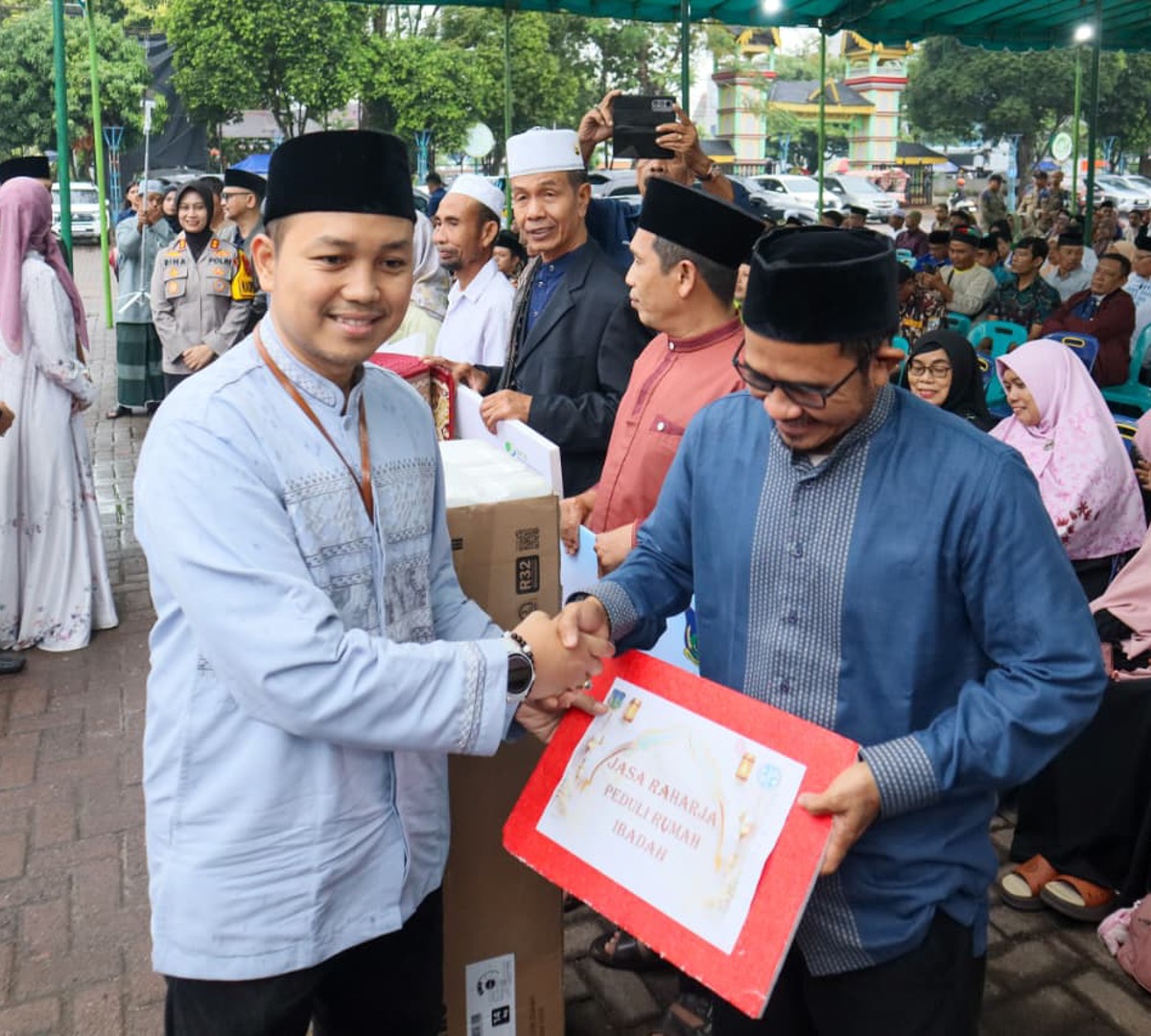 Acara yang berlangsung khidmat ini turut diisi dengan penyerahan bantuan secara simbolis kepada penerima manfaat, penampilan sholawat yang menambah kekhusyukan suasana, serta tausiyah agama yang disampaikan oleh Ustaz Irfan Yusuf menjelang waktu berbuka.