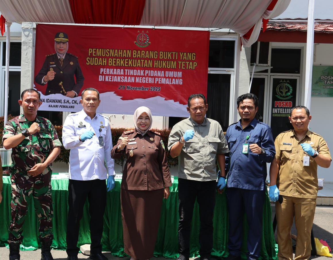 Surat Perintah Kepala Kejaksaan Negeri Pemalang Nomor PRIN-1621/M.3.22/BPApa.1/11/2025 tentang Pelaksanaan Pemusnahan Barang Rampasan pada Kejaksaan Negeri Pemalang Kegiatan dipimpin oleh Kepala Kejaksaan Negeri Pemalang dan dihadiri unsur Forkopimda, instansi terkait, serta tamu undangan.