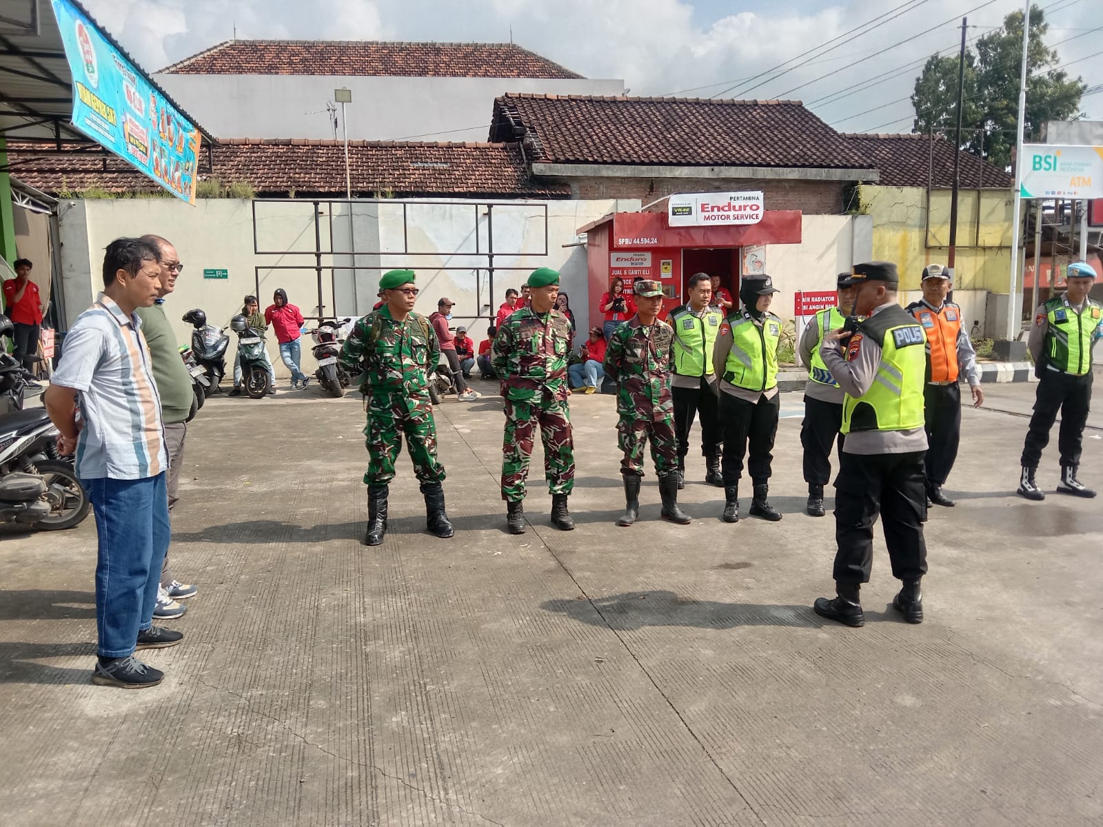 Selain menjaga situasi keamanan, anggota Koramil juga membantu pengaturan arus lalu lintas di sekitar SPBU Kriyan. Langkah ini dilakukan agar aktivitas masyarakat umum tidak terganggu oleh proses pemberangkatan peserta aksi.