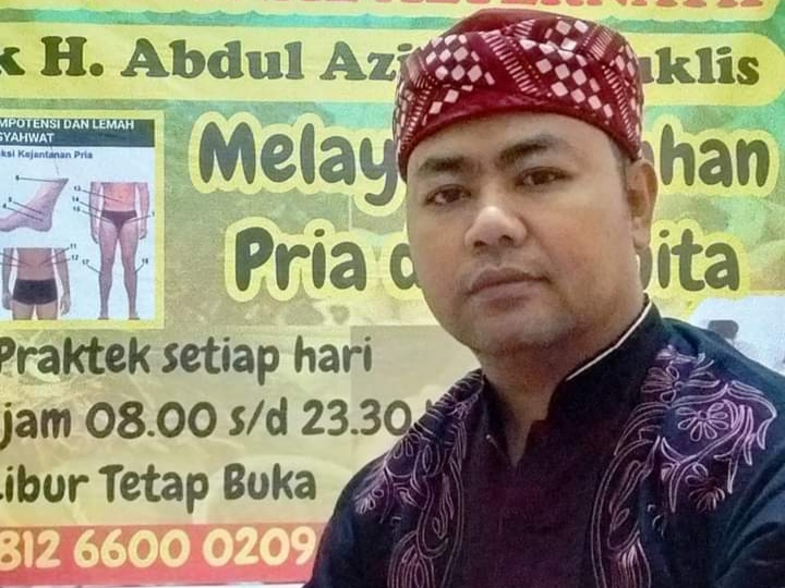 Dimana ditangan H. Abdul Azis problem akan diatasi dan disembuhkan dengan terapi pengobatan tradisional alat vital yang paling ampuh. Beliau merupakan pakar pembesar vitalitas pria yang sudah terbukti keampuhannya. Berasal dari Cisolok Sukabumi, H. Abdul Azis adalah ahli terapi kejantanan pria yang paling profesional dalam menangani berbagai keluhan pria dan wanita.