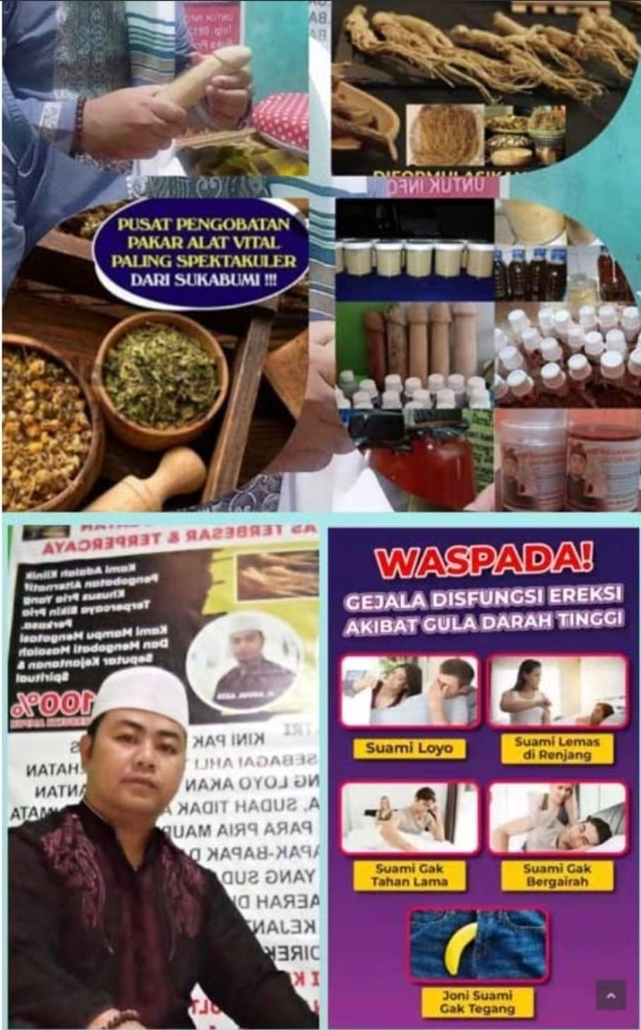 Bagi pasutri atau pasangan suami dan istri, Jika Anda memiliki keluhan terkait vitalitas yang menurun, seperti kurang percaya diri, sering lemas, susah ereksi karena diabetes, lemah syahwat, atau cepat keluar, solusi terbaik ada di sini. Metode pengobatan menggunakan terapi totok, pijat, dan urut yang dikombinasikan dengan ramuan herbal alami.