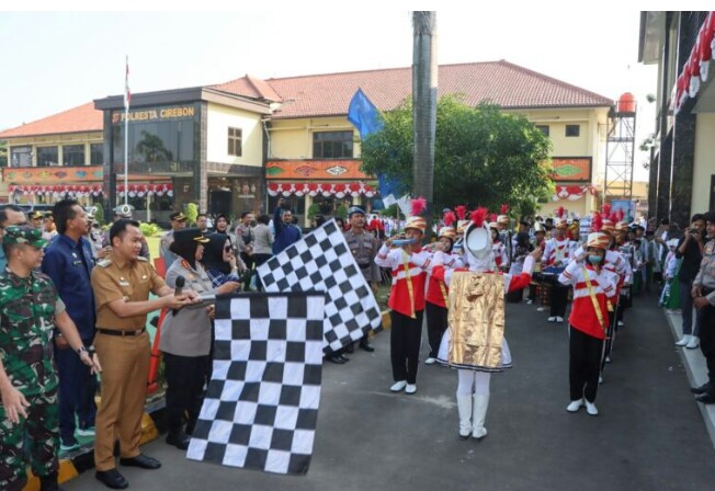 Polresta Cirebon bersama KPAID Kabupaten Cirebon menggelar Karnaval pelajar kampanye stop kekerasan terhadap anak Th 2024.