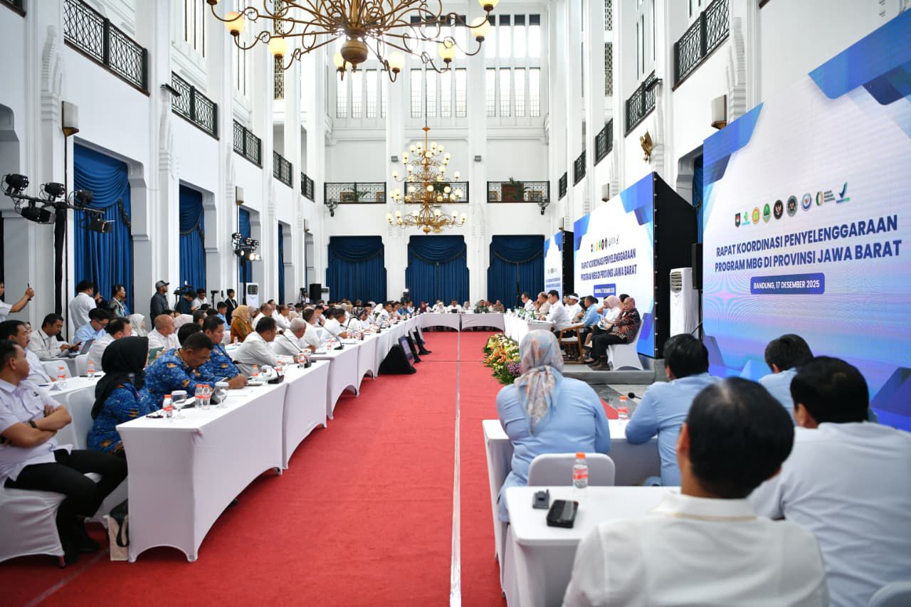 Rapat koordinasi tersebut dihadiri oleh Menteri Koordinator Bidang Pangan Republik Indonesia, Zulkifli Hasan, Kepala Badan Gizi Nasional Republik Indonesia, Dadan Hindayana, Gubernur Jawa Barat, Dedi Mulyadi, serta seluruh kepala daerah dan sekretaris daerah kabupaten/kota se-Jawa Barat.