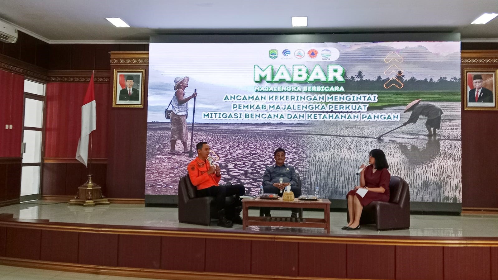 Sementara itu yang menjadi narasumber kali ini adalah Plt Kepala BPBD Majalengka yang juga menjabat Kepala Dinas Satpol PP dan Damkar Majalengka, Rachmat Kartono dan Kepala Bidang Ketahanan Pangan Dinas Ketahanan Pangan, Pertanian dan Perikanan Majalengka, Ence.