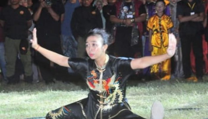 Tim wushu dan pencak silat menampilkan berbagai jurus dan teknik yang menunjukkan keindahan seni bela diri ini, memadukan kekuatan, kecepatan, dan ketangkasan dalam setiap gerakan.