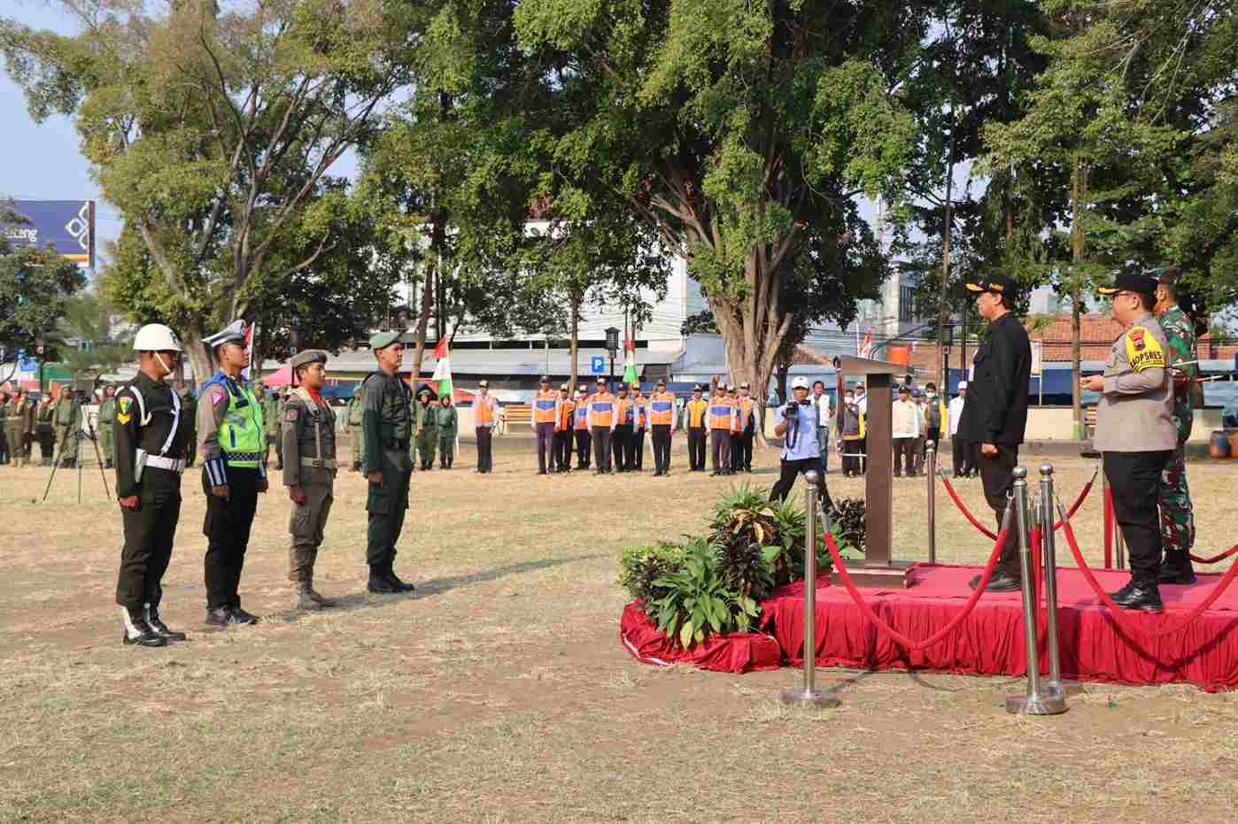 Hadir dalam kegiatan tersebut Kapolres Brebes, Dandim 0713 Brebes bersama jajaran Forkopimda dan tamu undangan dari instansi dan dinas terkait serta pasukan apel terdiri dari TNI Polri, Satpol PP, Dishub dan Dinas Kesehatan.