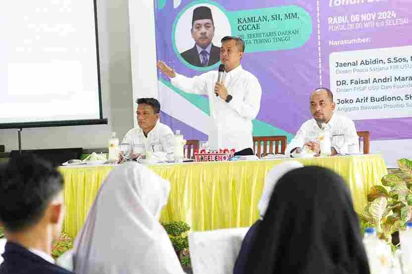 “Bagi adik-adik yang hadir disini, pemilihan Pilkada serentak tahun 2024 ini adalah kesan pertama. Kita kenali terlebih dahulu siapa bakal calon, kontestannya. Dan jangan lupa juga untuk membaca visi-misinya. Artinya apa, satu suara menentukan masa depan kita, masa depan Kota Tebing Tinggi,” ujar Pj. Wali Kota saat menghadiri kegiatan Pendidikan Politik Bagi Pemilih Muda Kota Tebing Tinggi Tahun 2024, bertempat di Pondok Bagelen, Jln. Deblod Sundoro, Rabu (06/11/2024).