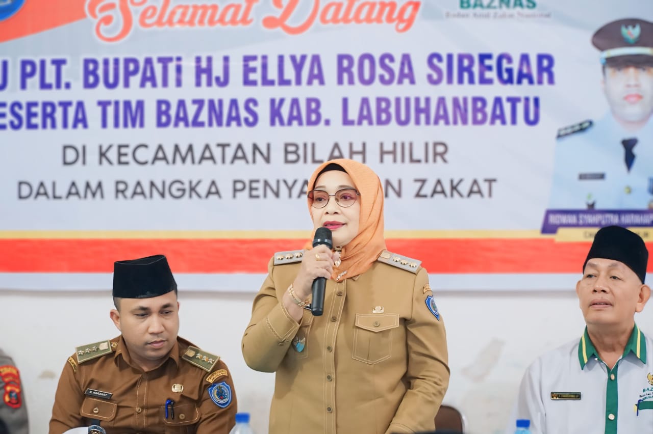 LABUHANBATU SUMUT, sidikkriminal.co.id – Pelaksana tugas (Plt) Bupati Labuhanbatu Hj. Ellya Rosa Siregar, S.Pd., M.M., bersama Baznas Labuhanbatu menyalurkan zakat di Kecamatan Bilah Hilir, penyaluran zakat digelar di Kantor Kecamatan Bilah Hilir, Jalan Pembangunan, Kelurahan Negeri Lama. Selasa (3/9/2024).