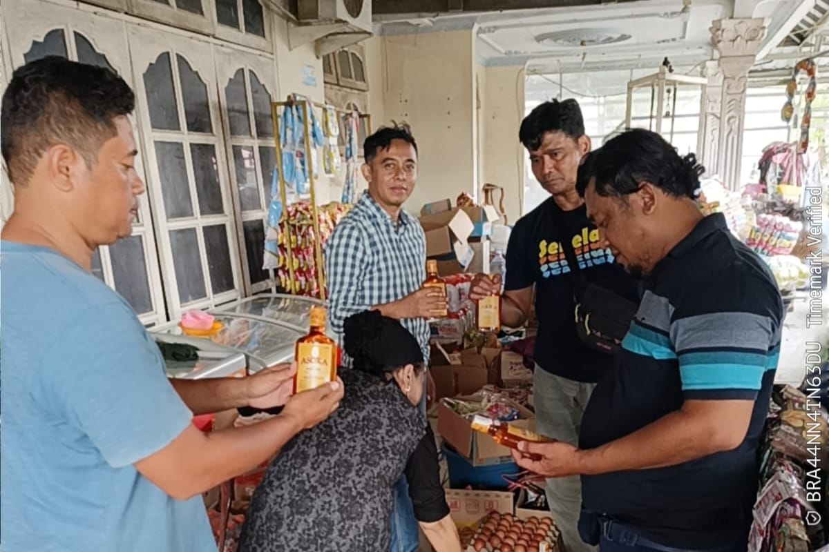 Dalam razia pekat tersebut petugas berhasil mengamankan 98 botol miras pabrikan berbagai merek dan miras tradisional ciu.