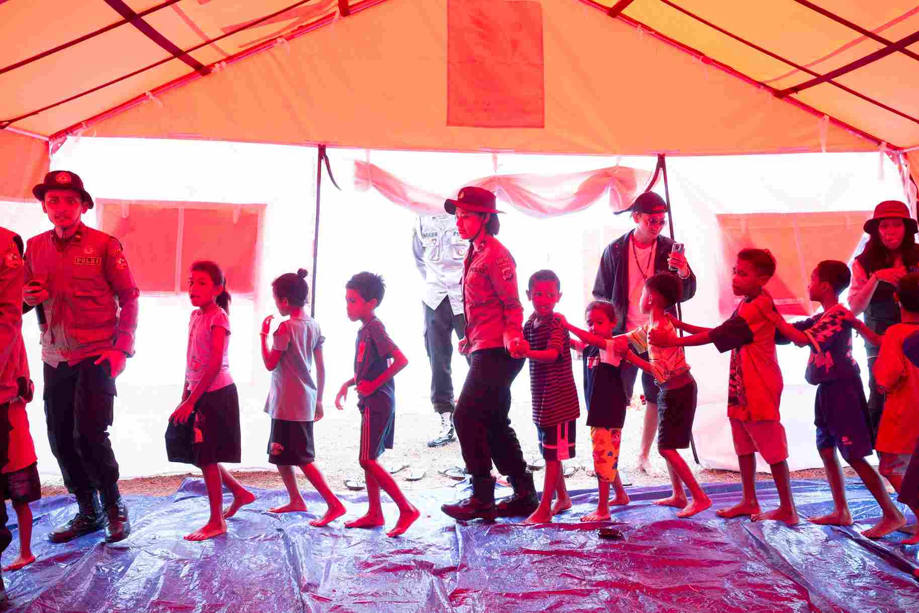 “Tim melakukan kegiatan energizer kepada anak-anak yang berada dalam posko dengan rentang pendidikan mulai dari SD sampai dengan SMP. Lalu pemberian dukungan logistik setelah sesi energizer yang dibantu oleh Polwan Polres Flores Timur,” ujar Kristiyono.