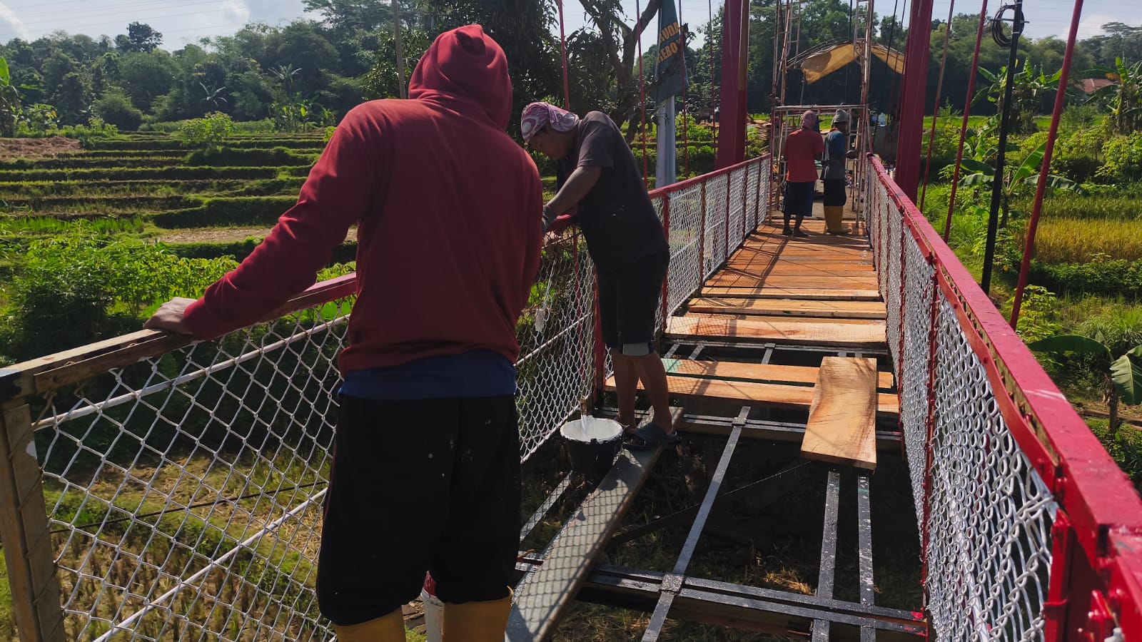 Semangat kebersamaan terlihat dalam setiap tahapan pengerjaan, mulai dari perbaikan struktur hingga penguatan fasilitas penunjang jembatan.