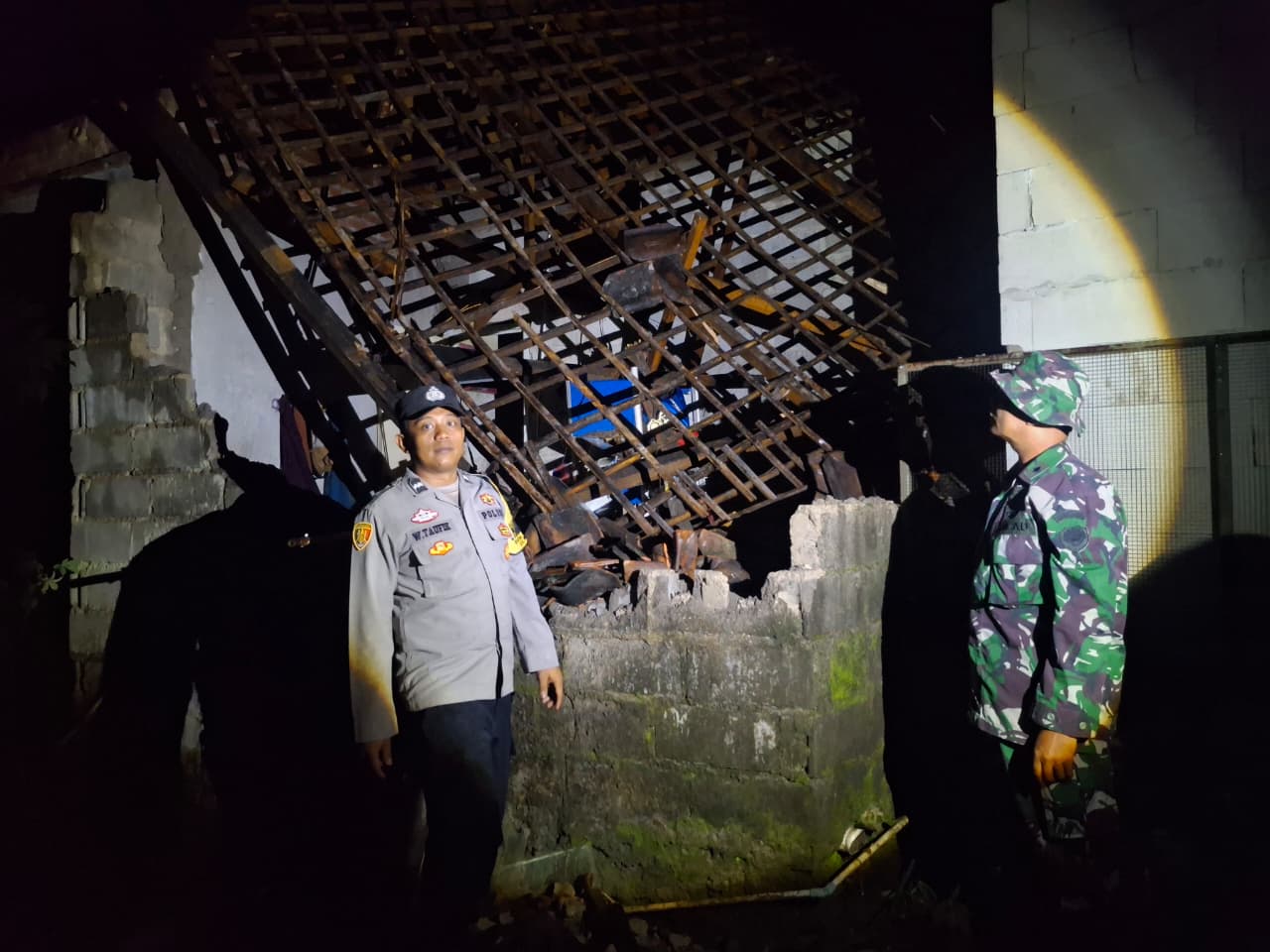 “Akibat hujan deras disertai angin kencang, salah satu rumah warga mengalami kerusakan cukup parah. Kami bersama warga langsung melakukan monitoring dan membantu penanganan di lokasi,” ujar Babinsa.