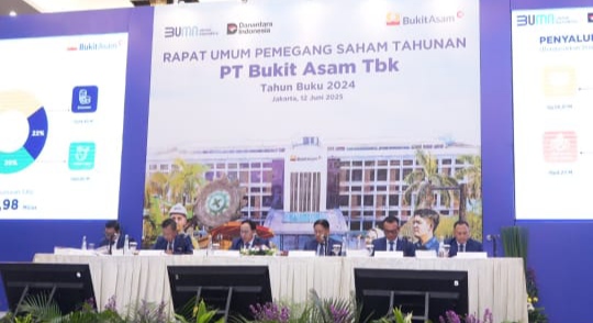 JAKARTA, sidikkriminal.co.id – PT Bukit Asam Tbk (PTBA) mengadakan Rapat Umum Pemegang Saham Tahunan (RUPST) untuk Tahun Buku 2024. Dalam rapat tersebut, pemegang saham menyetujui 75 persen dari laba bersih Perseroan tahun 2024 digunakan sebagai dividen, sementara sisanya digunakan untuk pengembangan bisnis di masa depan. Pada Kamis (12/06/2025).