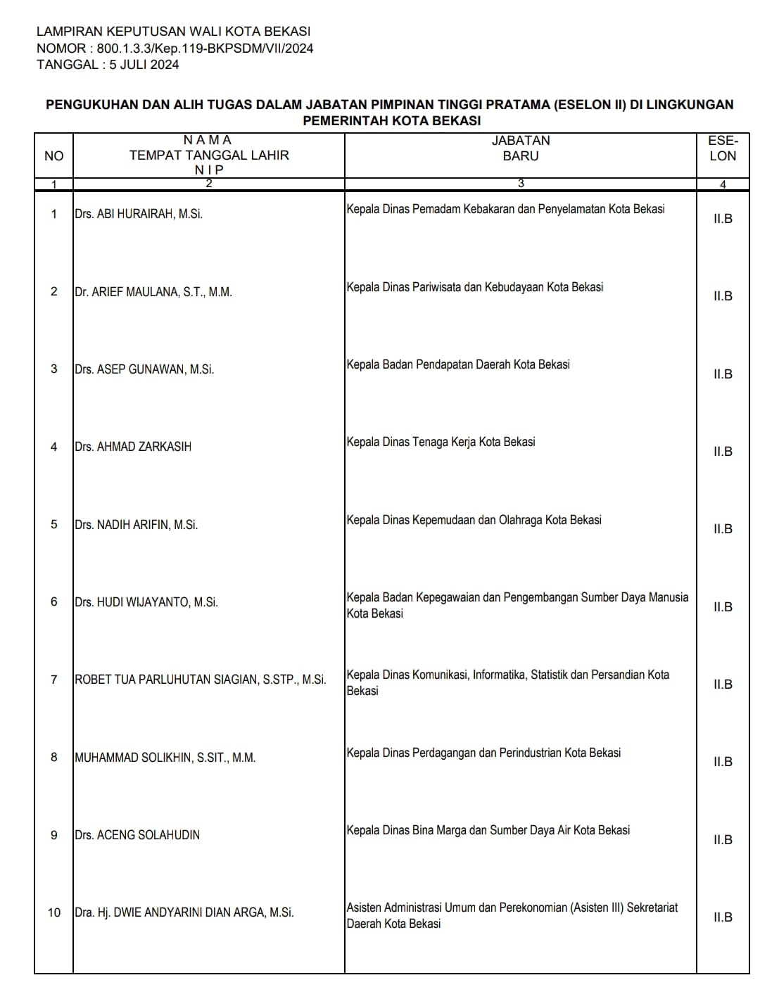 Berikut ini daftar pejabat Eselon II yang terkena mutasi rotasi :