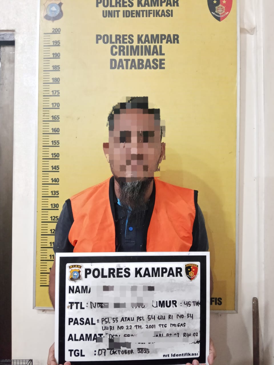Pasalnya pelaku melakukan tindak pidana penyalahgunaan pengangkutan atau tata niaga BBM jenis solar bersubsidi. “Saat itu pelaku berhasil diamankan, dengan barang bukti 26 jirigen yang berisikan minyak solar, dimana per jerigennya berisi 30 liter BBM,” jelas Kapolres Kampar AKBP Boby Putra Ramadhan S melalui Kasat Reskrim AKP Gian Wiatma Jonimandala, Rabu (8/10/2035).