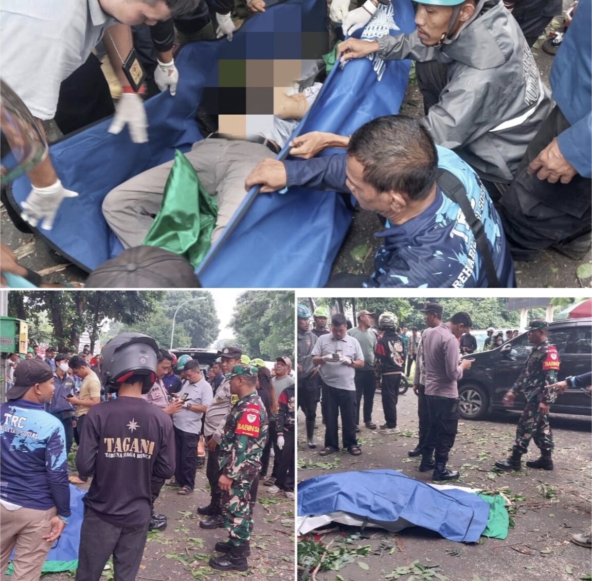 BOGOR, sidikkriminal.co.id – Sebuah dahan pohon besar yang tiba-tiba patah dan jatuh menimpa dua orang yang tengah berboncengan menggunakan sepeda motor. Peristiwa tragis tersebut terjadi di Jalan Tentara Pelajar, Kel. Ciwaringin, Kec. Bogor Tengah, Kota Bogor, Jumat (1/11/2024) sekitar pukul 14.55 WIB. Mengakibatkan salah satu korban meninggal dunia di tempat.