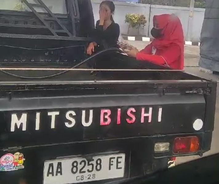 Setelah diisi mobil tersebut maju tapi mundur lagi untuk ngisi kembali tanpa harus mengantri padahal saat itu antrian dari masyarakat sangatlah panjang dan operator tidak mempermasalahkan hal tersebut. Kamis, (08/08/24).
