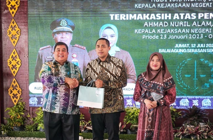 MUARA ENIM, sidikkriminal.co.id – Sekretaris Daerah Kabupaten (Sekdakab) Muara Enim, Ir. Yulius, M.Si., menghadiri acar pisah sambut Kepala Kejaksaan Negeri Muara Enim dari Ahmad Nuril Alam, S.H., M.H., kepada Rudi Iskandar, S.H., M.H., yang digelar di Balai Agung Serasan Sekundang (BASS), Jumat (12/07/2024).