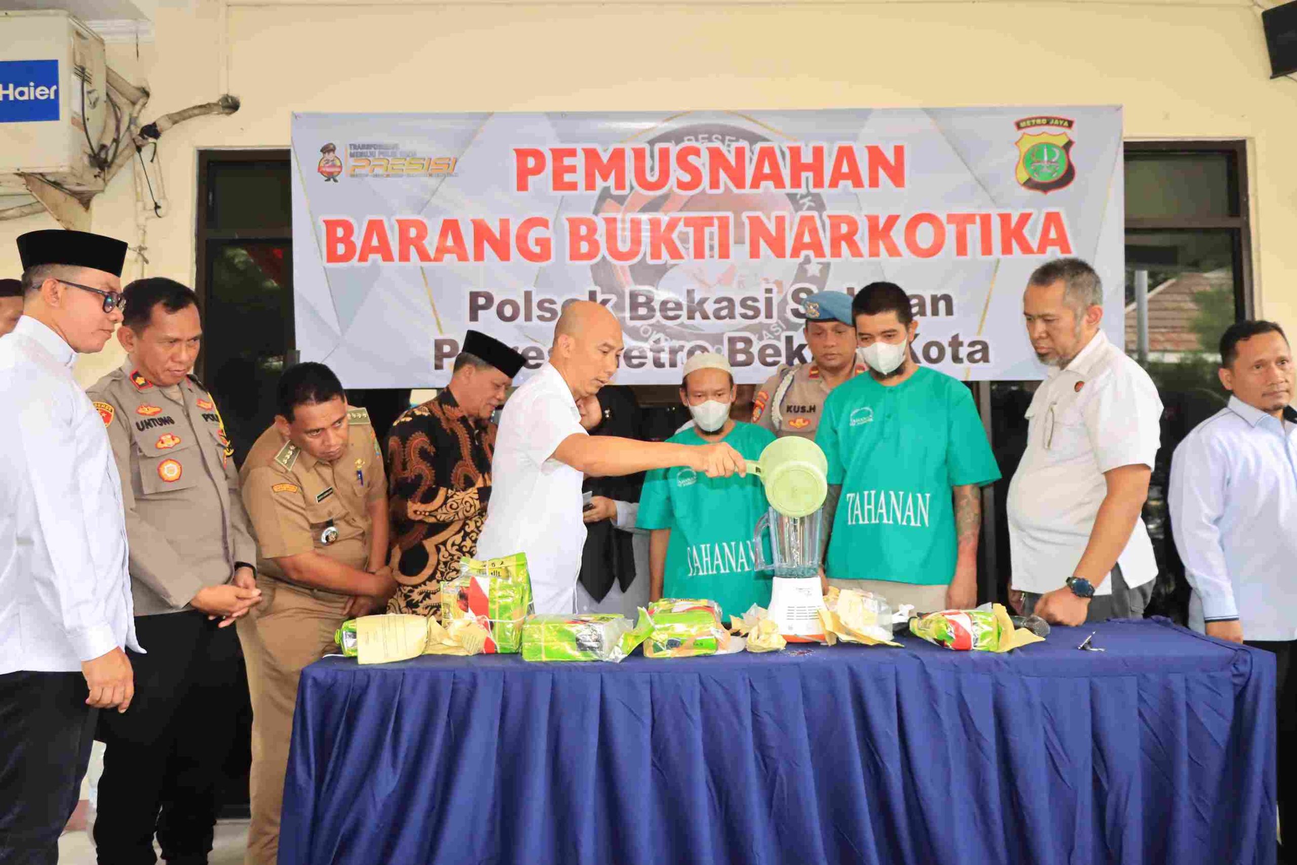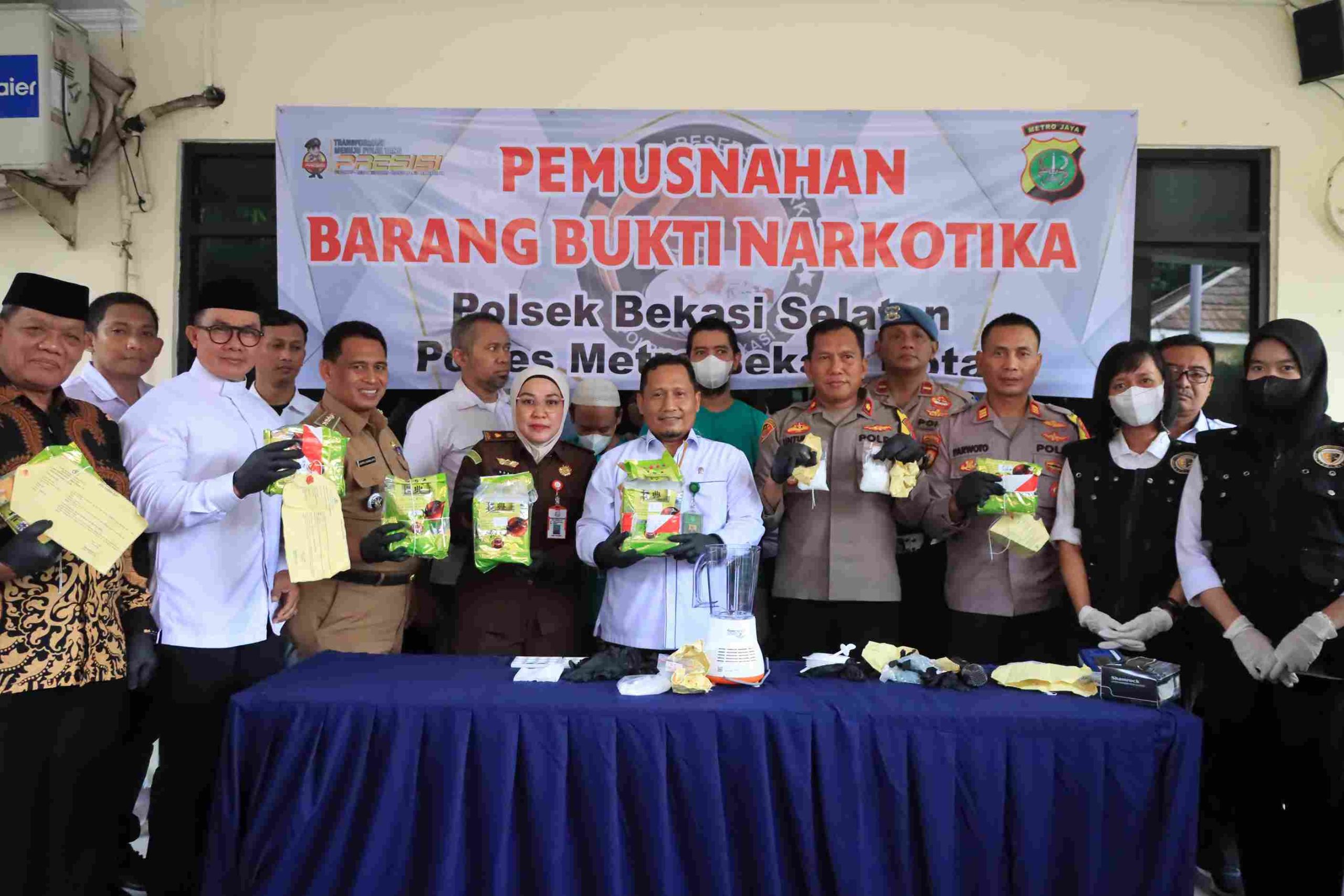 Kapolsek Bekasi Selatan Kompol Untung Riswaji, S.H., M.H., M.M., didampingi Wakapolsek AKP Parwoto dan Kanit Reskrim AKP Imam Prakoso menjelaskan bahwa pemusnahan tersebut dilakukan setelah ada penetapan dari Pengadilan Negeri Kota Bekasi. Uji narkotika dilakukan oleh Puslabfor Mabes Polri disaksikan Kapolsek dan undangan.