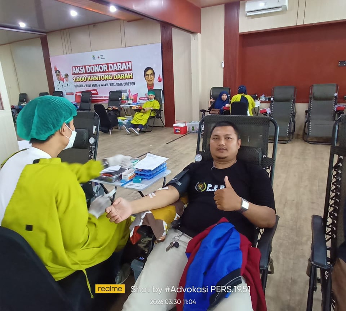 KOTA CIREBON, sidikkriminal.co.id –Sinergi antara Pemerintah Kota Cirebon bersama berbagai elemen masyarakat, termasuk insan pers, terlihat kuat dalam aksi kemanusiaan donor darah yang digelar pada Senin (30/3/2026) di Balai Kota Cirebon.