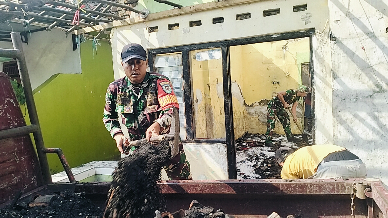 Kegiatan tersebut dilakukan setelah musibah kebakaran yang menghanguskan tiga unit rumah warga, sehingga menyisakan puing-puing bangunan dan material yang berserakan.