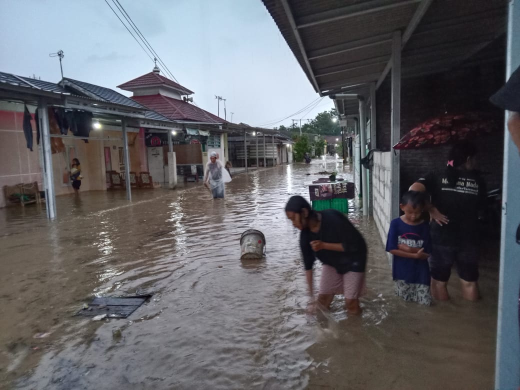 Genangan air setinggi Lutut orang Dewasa terlihat memenuhi jalan poros desa yang Arah ke Blok Sinabe, sementara di Pemukiman Perumahan Grand Duta Air Telah menggenangi rumah warga ketinggian air mencapai hingga setengah meter, Tak kurang dari 47 rumah terdampak dalam kejadian ini. Air yang datang tiba-tiba dan deras membuat warga langsung kalang kabut untuk membereskan Barang barang perabot Rumah Tangga untuk memindahkan ke tempat yang lebih aman,